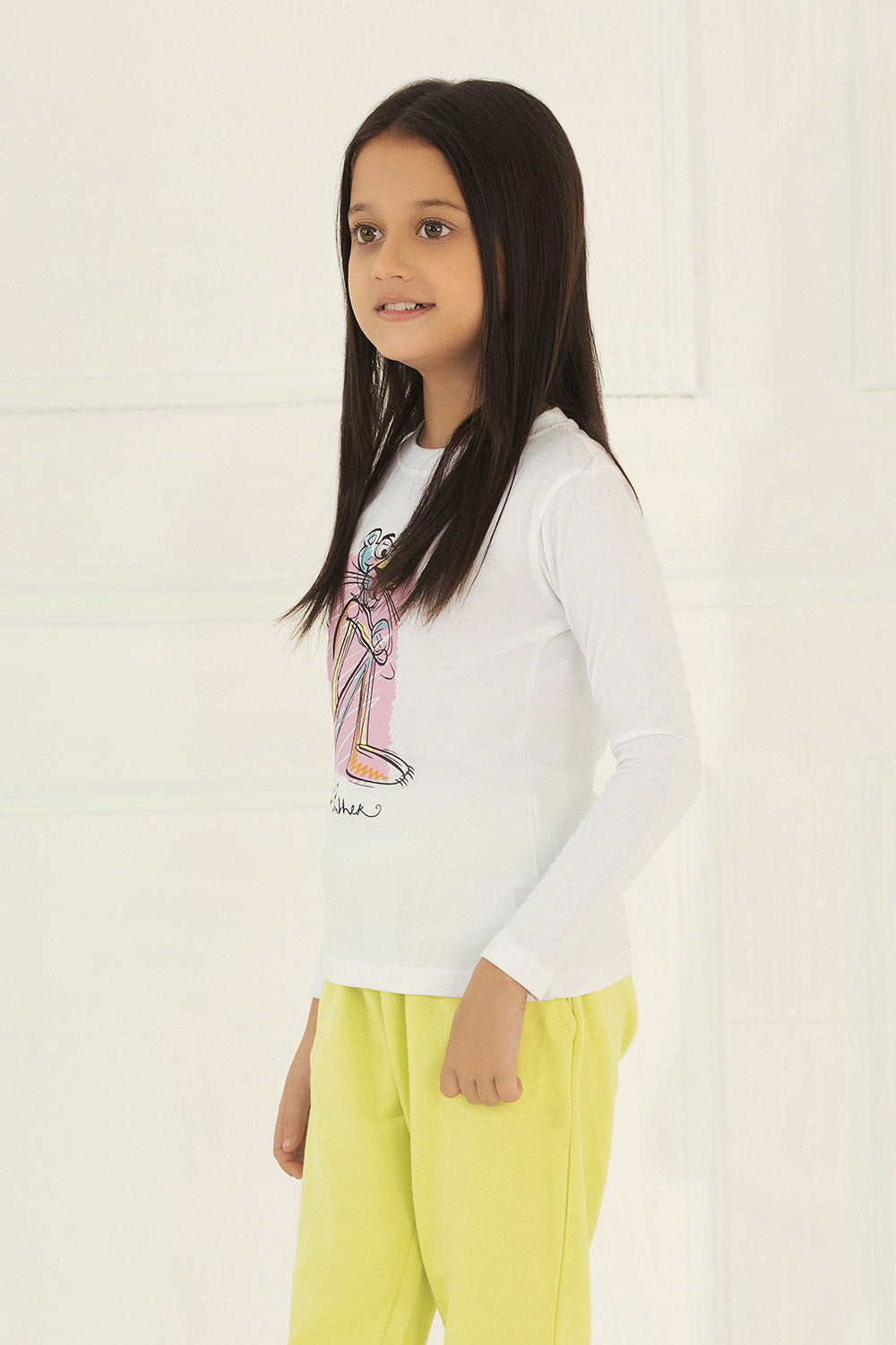 Pink. Add the Pink Panther magic to their wardrobe with this cute Elsa top. Designed in a comfy regular fit with a classic round neckline and ruffles at sleeves. Pink Panther Graphic adds a style statement in there wardrobe.